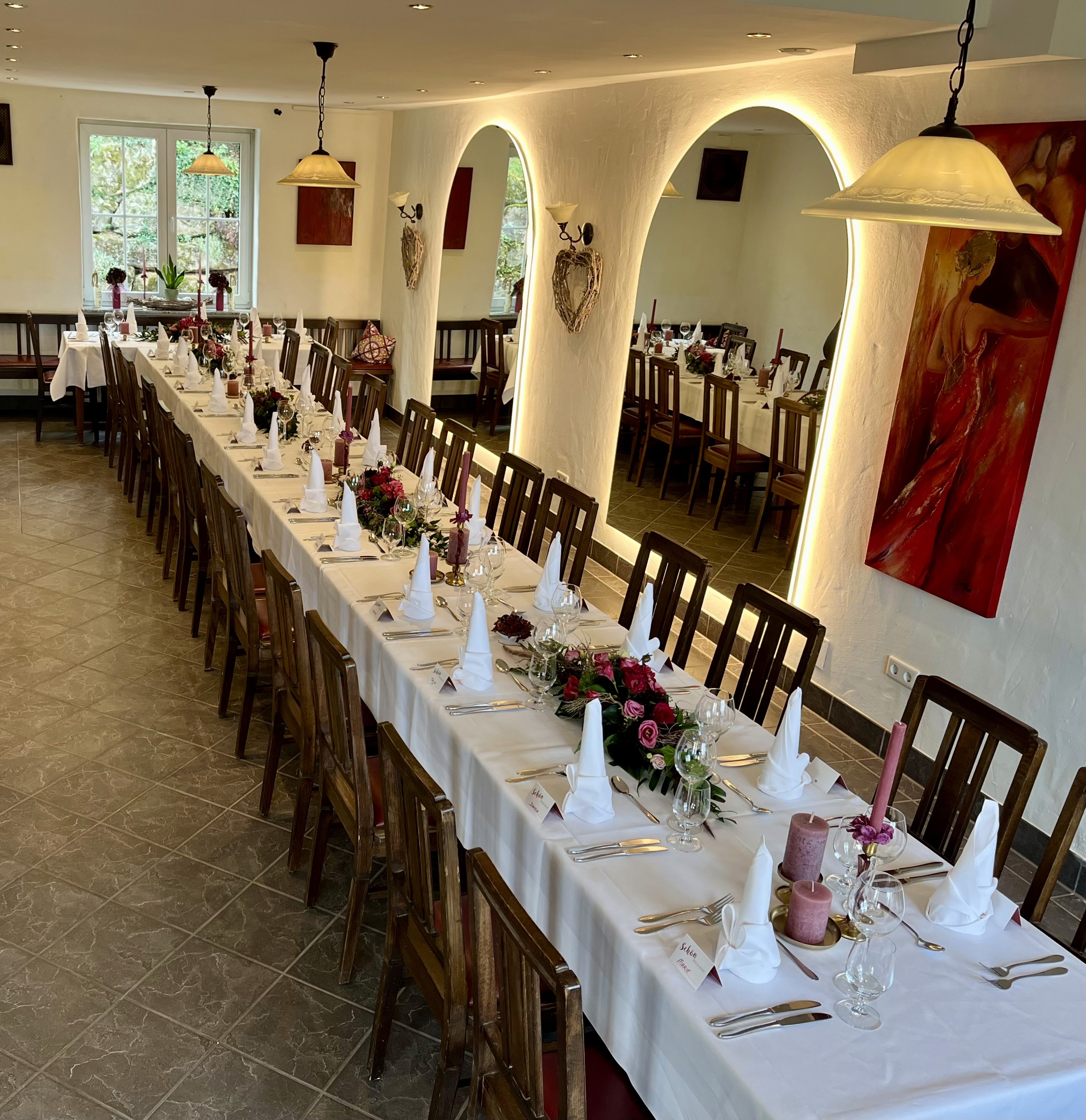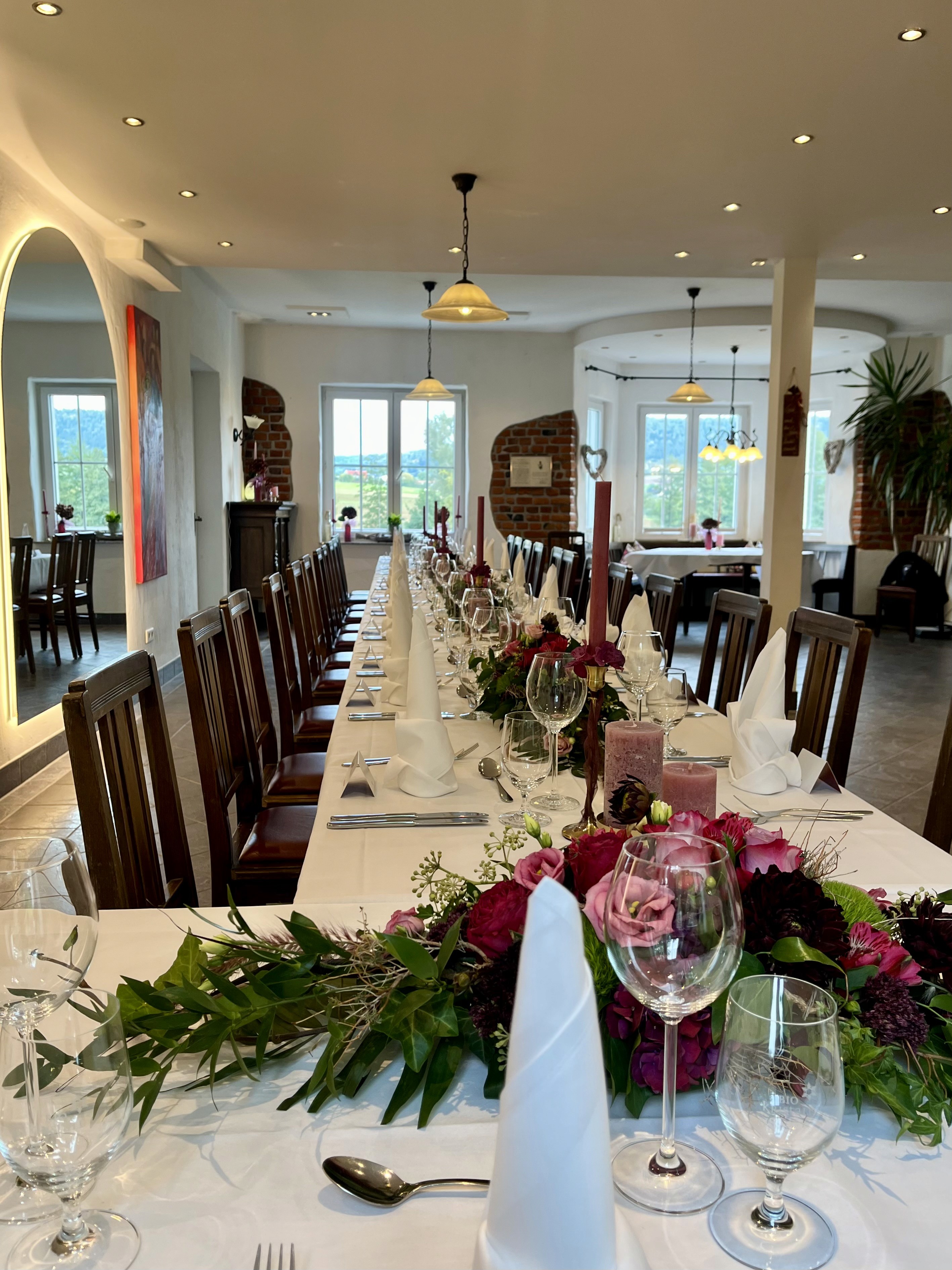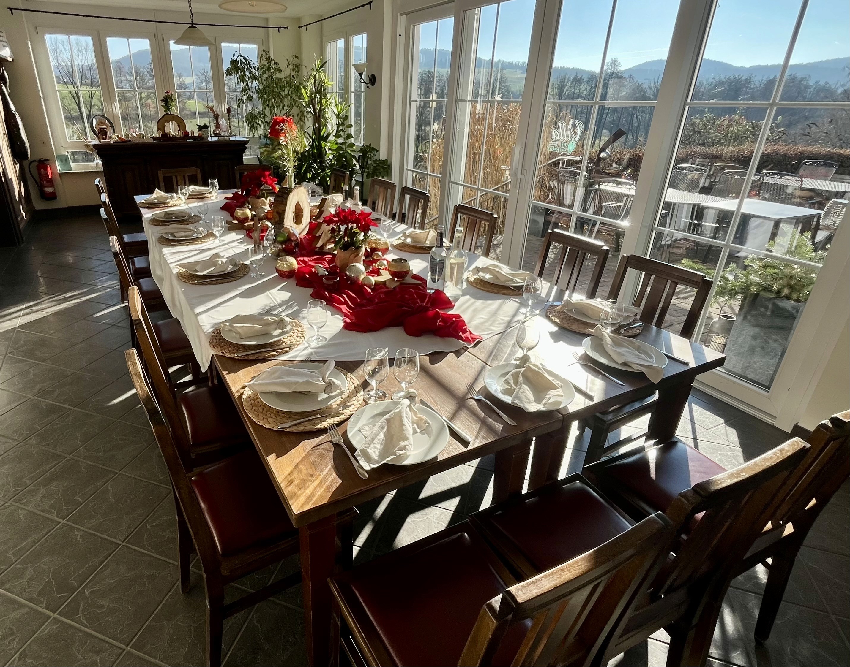 In der Villa wird’s familiär und festlich zugleich. Für kleinere Feiern bis 50 Personen bieten die stilvollen Räume – Kaminzimmer, Wohnküche oder Gartenzimmer – die perfekte Kulisse. Ideal für Vorabende, runde Geburtstage oder einfach ein feines Zusammensein im kleinen Kreis.