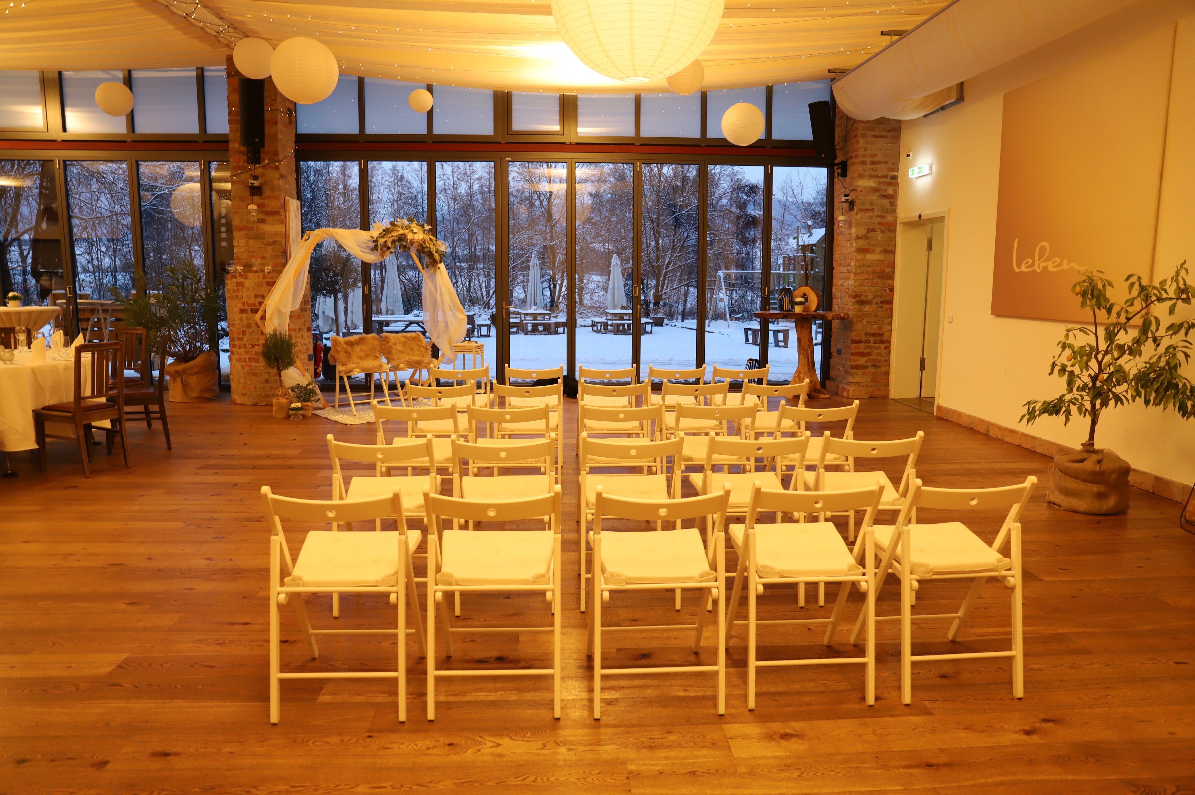 Unsere große Halle ist das Herzstück für Feste mit bis zu 199 Personen. Lichtdurchflutet, stilvoll und mit rustikalem Charme – aus einer alten Werkstatt wurde ein Ort, der Raum für große Gefühle schafft. Ob Hochzeit, Firmenfeier oder Jubiläum: Hier wird’s besonders, persönlich und ganz nach euren Vorstellungen.